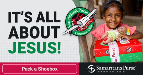 Each year we join together to share the love of Jesus through Operation Christmas Child. This ministry, led by Samaritan’s Purse, delivers shoebox gifts filled with toys, school supplies, and personal care items to children around the world. Every box is an opportunity to bring joy, hope, and the message of God’s love to a child in need.