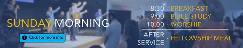 Start your Sunday with a warm breakfast at 8:30 AM, followed by Bible Study at 9 AM, and Worship at 10 AM. Come hungry — for food and for God’s Word! Stay after the service for our fellowship meal as we share good food and great company together.