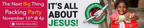Each year we share the love of Jesus through Samaritan’s Purse’s Operation Christmas Child. Shoebox gifts filled with toys, school supplies, and personal care items bring joy and hope to children around the world. Join us for our Packing Party or pack a box on your own—you’ll help share God’s love, one shoebox at a time.